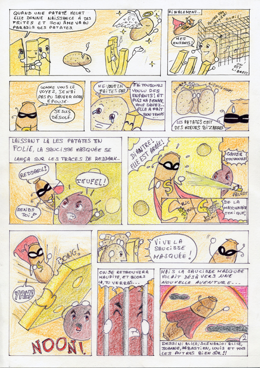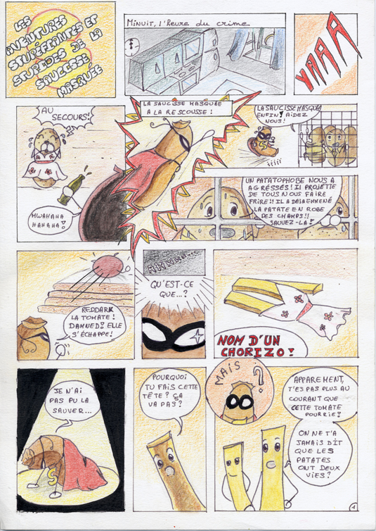 La semaine dernière j’étais fort occupée, et donc pas trop le temps de dessiner, vectoriser, poster… En revanche, totalement par hasard j’ai retrouvé aujourd’hui une de mes premières B.D., que j’avais perdue pendant 2 ans! et mes fans de le 1e heure apprécieront surement de pouvoir la relire.  Avec une dédicace pour le concombre masqué (certains reconnaitront), et en attendant que je poste de nouvelles choses,  je vous laisse (re)découvrir Les aventures stupéfiantes et stupides de la Saucisse Masquée :