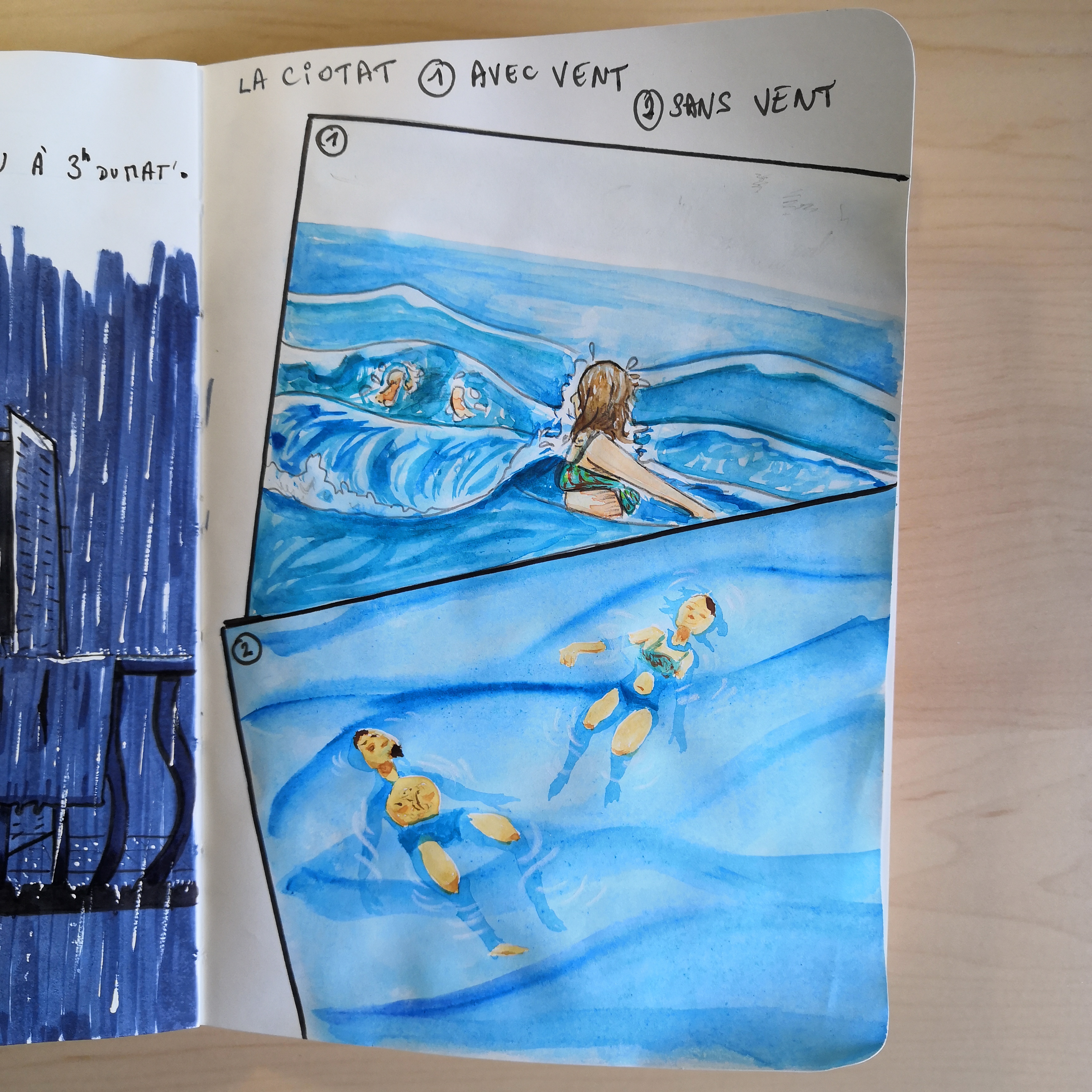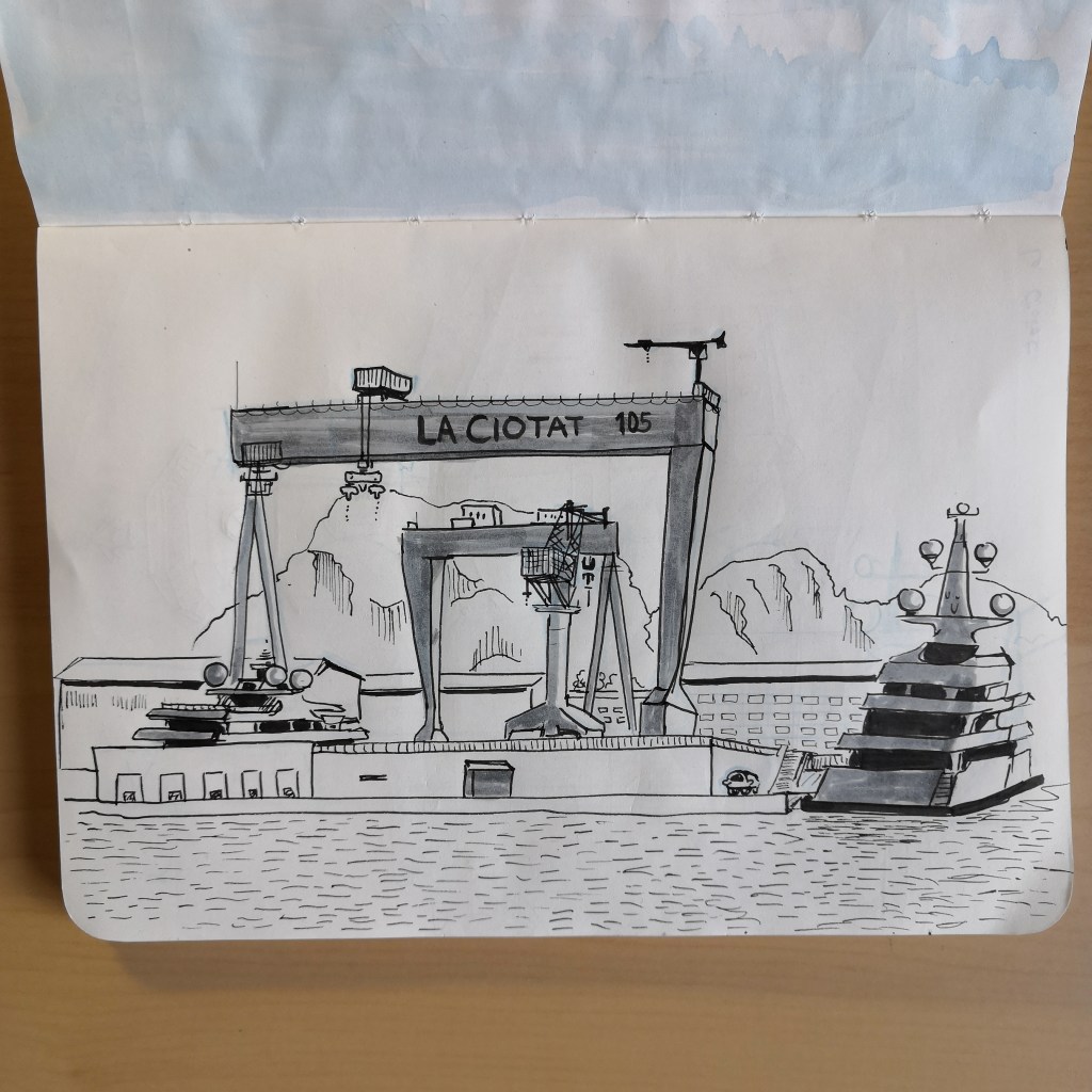 Non classéVacances méditerranéennes #2 La deuxième partie du carnet de vacances, entre La Ciotat et Marseille. Et oui, il n’a pas plu la journée, on s’est donc senti « obligés » de prendre une vraie douche sous l’orage nocturne pour récupérer les affaires qui séchaient dehors.